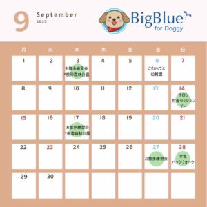 9月のパックウォーク、お散歩練習会のスケジュールをUPしました。